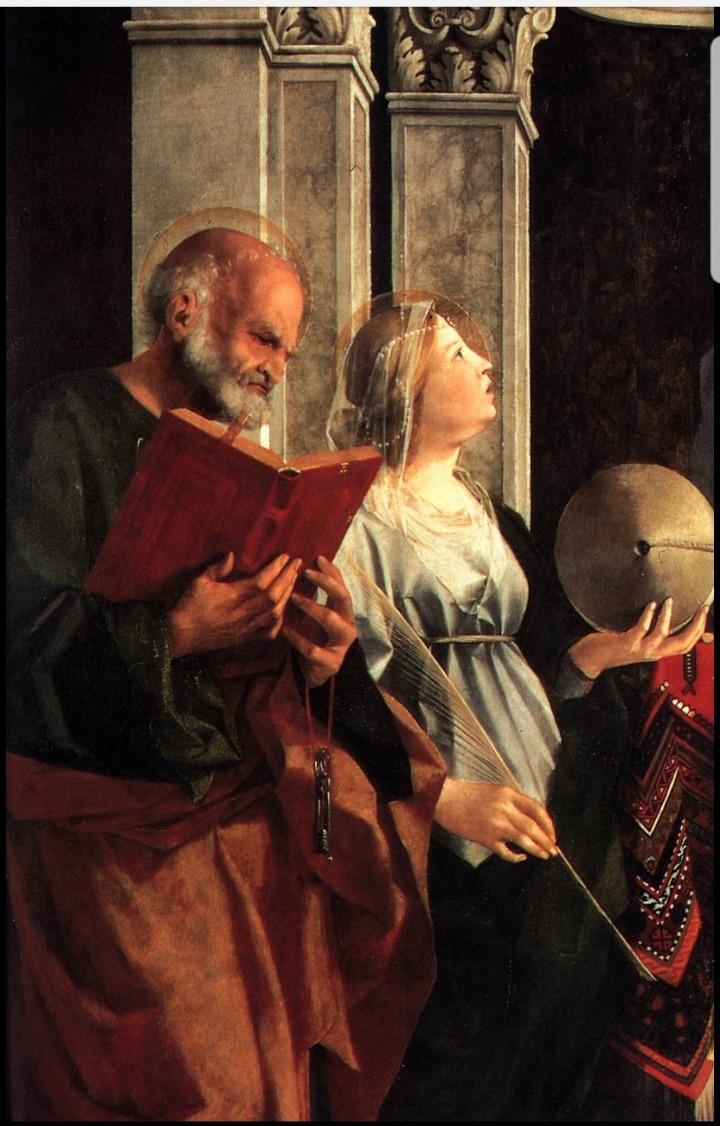 △ Lorenzo Lotto작, 성 베드로, 크리스트나, 리베랄레, & 제로메· 할께 계신 성모자(좌~ 사도 성 베드로, 볼세나의 성녀 크리스티나, 성모자, 트레비소의 성 리베랄리스, 성 예로니모),