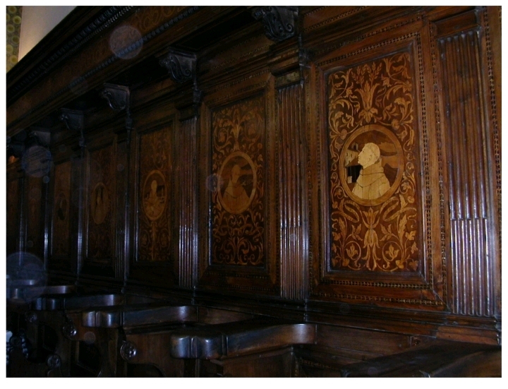 △ 라베르나 오상 경당의 가대 벽에 목각으로 새겨져 있는 형제들의 초상화