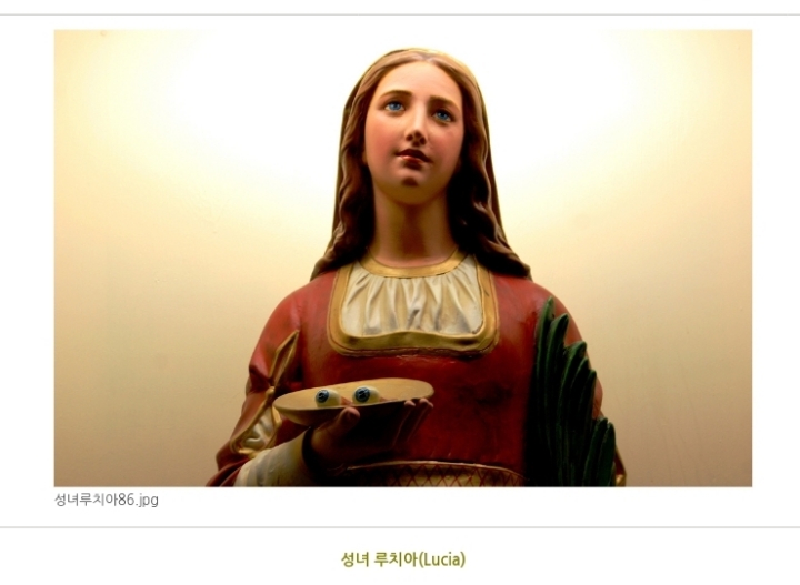 • 빛을 의미하는 룩스(Lux)라는 단어에서 유래한 이름을 가진 성녀 루치아는 이런 모진 고문을 받을 때 눈알이 뽑히는 형벌까지도 받았다.