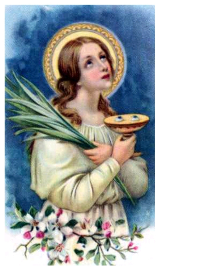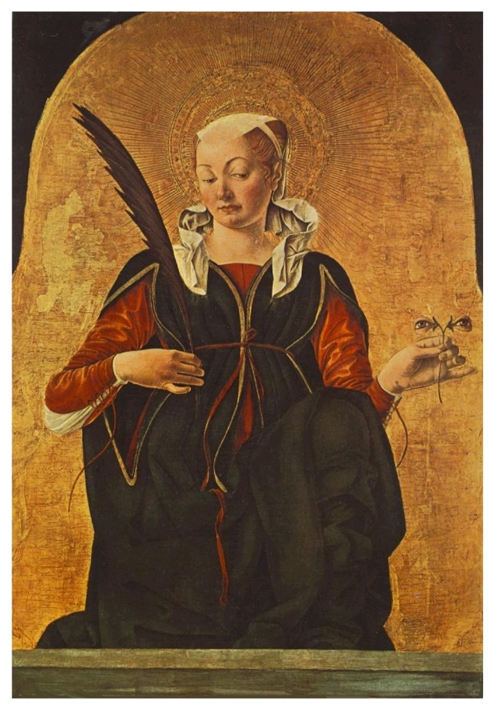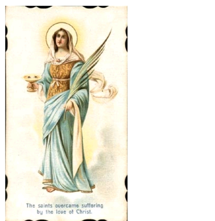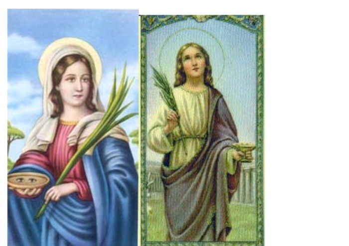 304년데 시칠리,시러쿠스 에서 목을 (칼에)찔려 순교; 그녀의 유물은 유럽 전역의 교회에서 존경받습니다)
