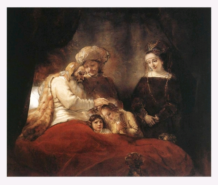 Jacob Blessing the Children of Joseph-REMBRANDT Harmenszoon van Rijn.