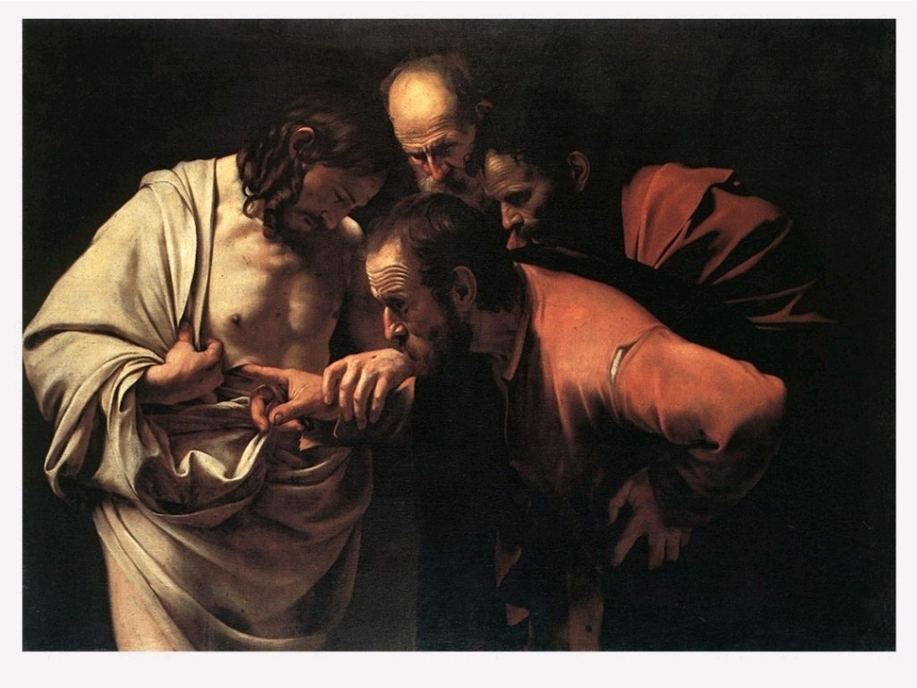 토마스는 예수님을 만져 보고 나서야 "나의 주님, 나의 하느님!"이라고 고백했다.