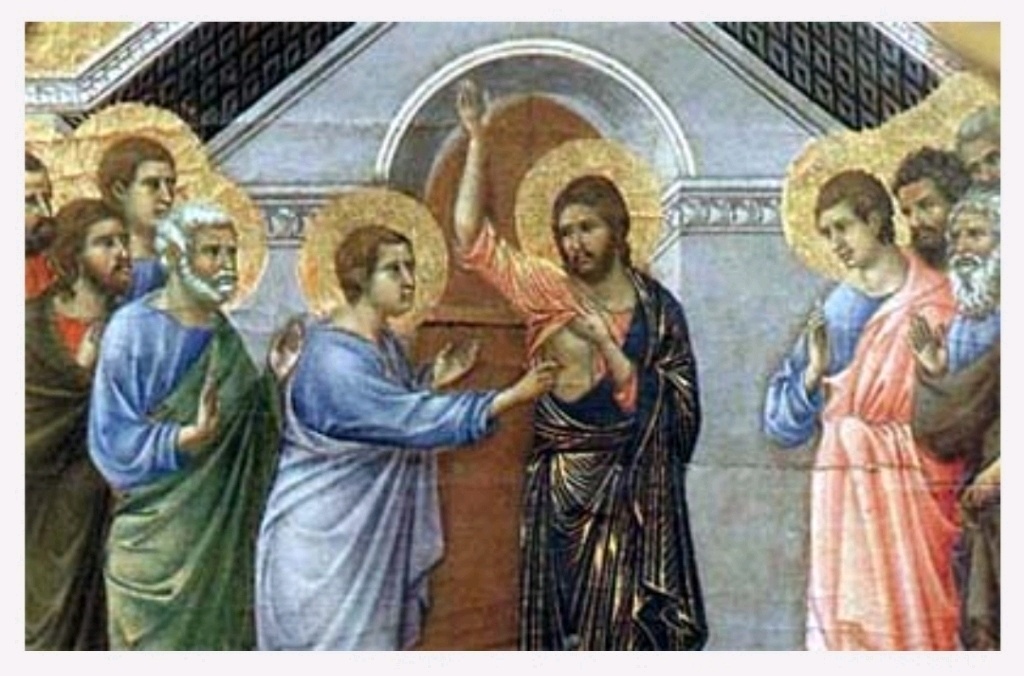 그 의심하는 제자가 스승의 육신이 받은 상처에 손을 대었을 때 우리 하느님께서는 불신앙이라는 상처를 고쳐주셨습니다.