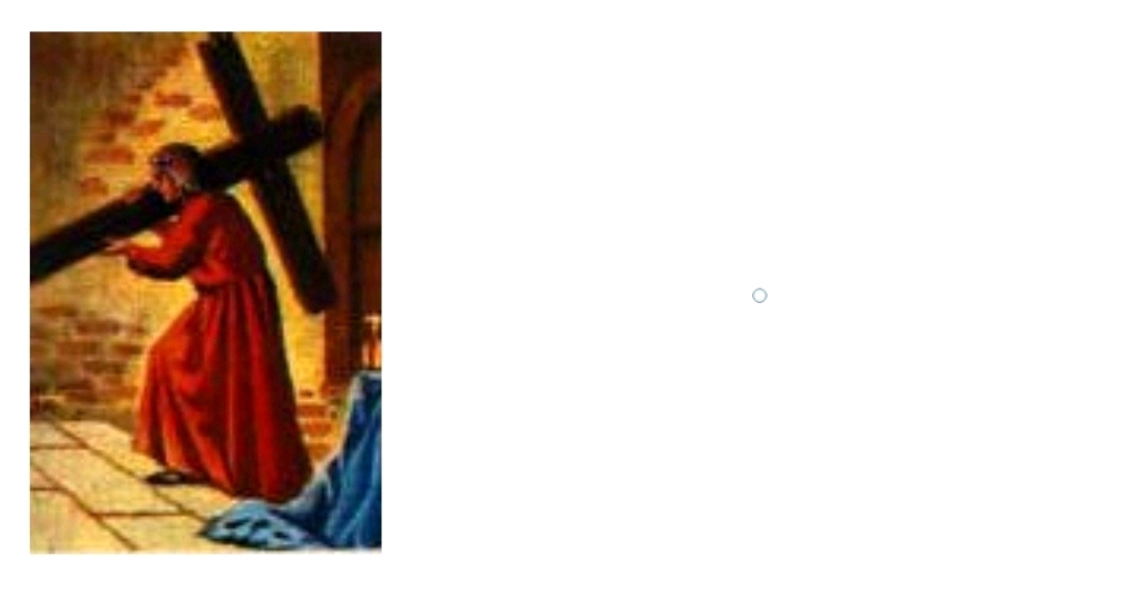 손수 십자가를 메고 갈바리아 산에 올라가려 했으나 웬일인지 발걸음이 조금도 떨어지지 않았다.