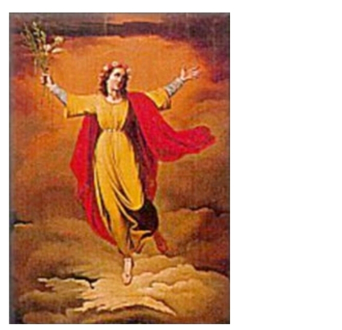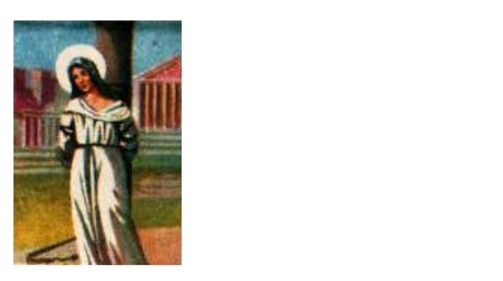(- 로마에서 4세기경~ 361년 채찍과 칼에찔려 죽음, 그녀의 몸은 개에게 던져졌으나, 그러나 그녀를 건드리지 않았다; 그리고 그녀는 이틀 후에 매장되었다.)