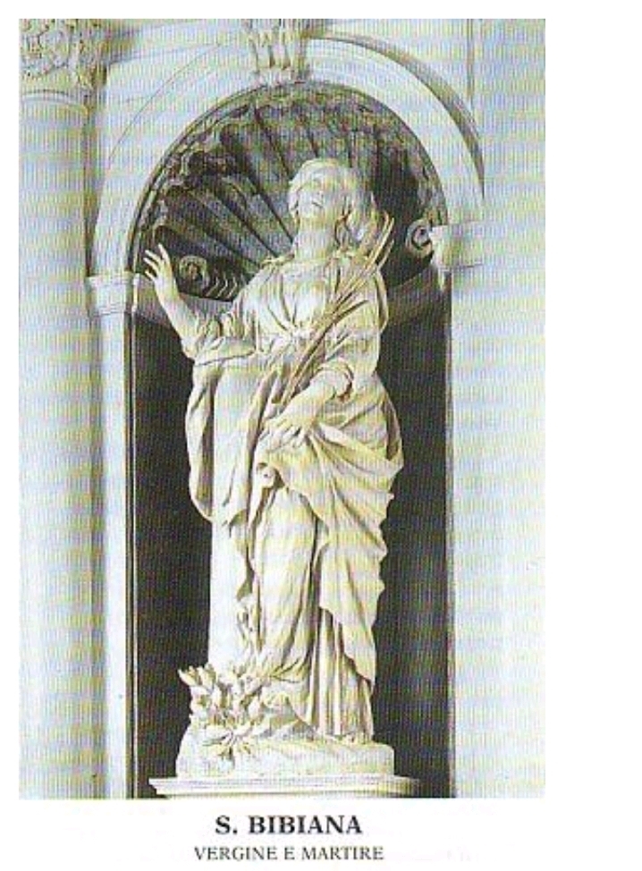 전설에 따르면 성녀 비비아나는 배교자 율리아누스 황제의 박해 때 신앙 때문에 고문을 받고