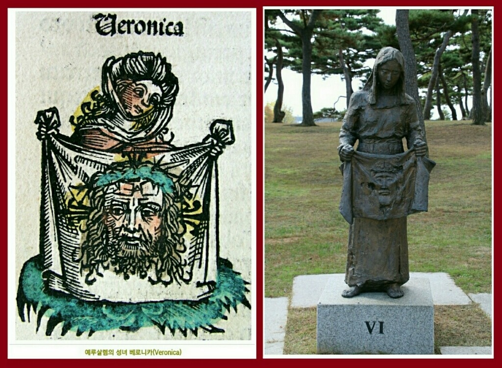 · 전승에 의하면 성녀 베로니카는 예수께서 골고타(해골산)로 십자가를 지고 가실 때 예수님의 얼굴에서 흘러내리는 피땀을 닦아 준 예루살렘의 어느 부인이다.