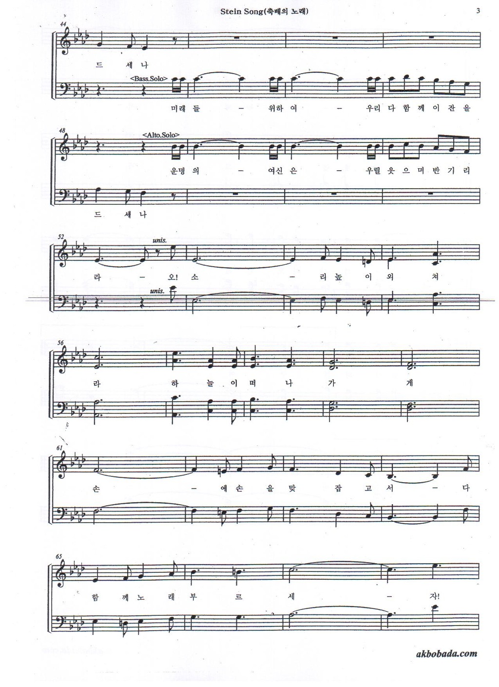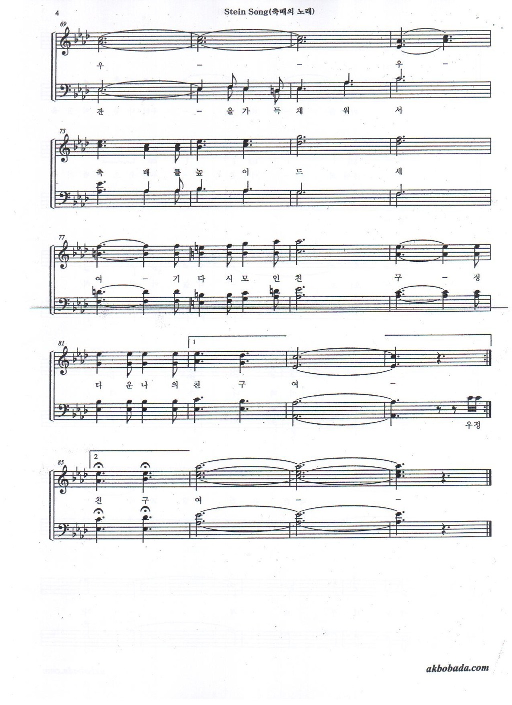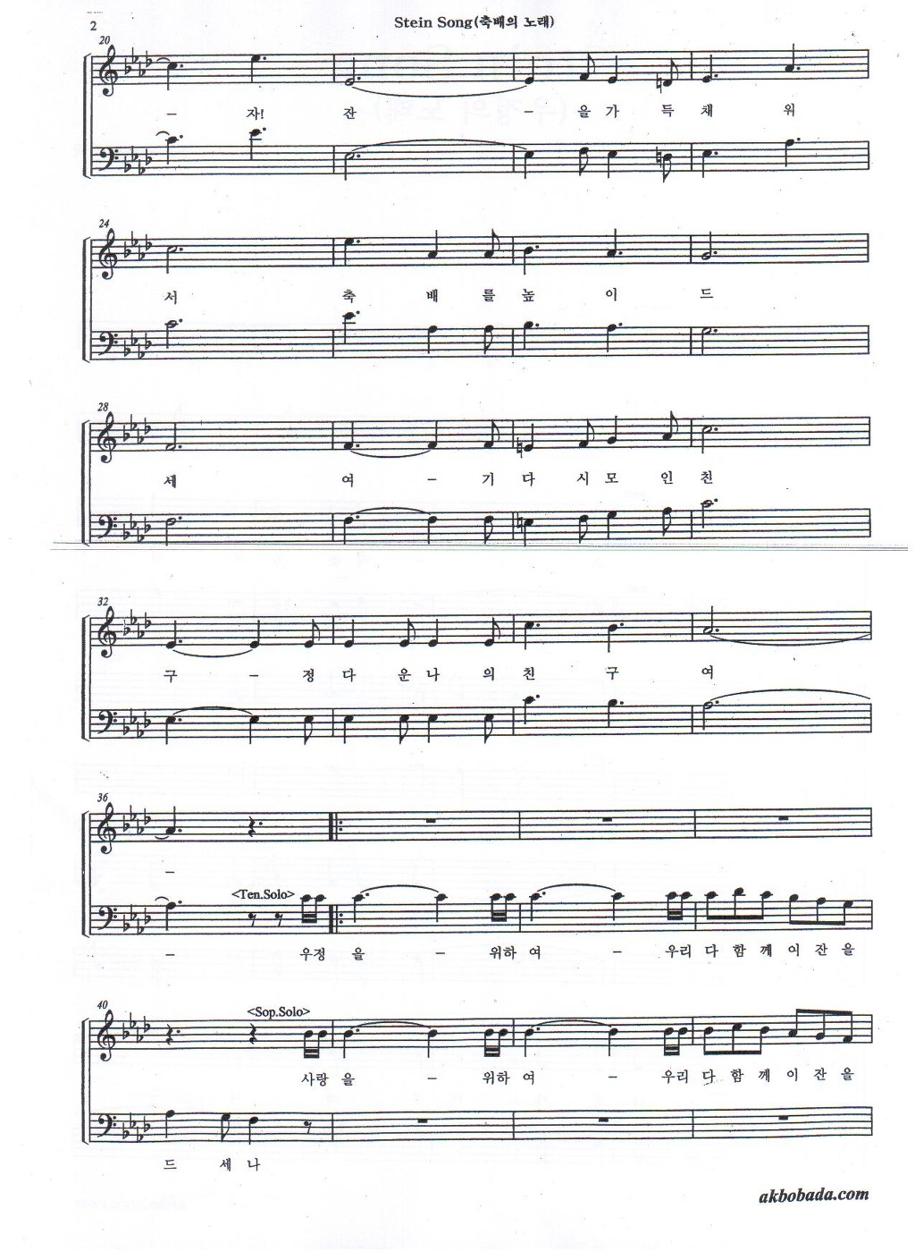 Re:Stein Song <축배의 노래>악보 작성자수수꽃다리|작성시간09.02.23|조회수1,143 목록 댓글 0 글자크기 작게가 글자크기 크게가 Stein Song 우정의 노래 1.jpg Stein Song 우정의 노래 2.jpg Stein Song 우정의 노래 3.jpg Stein Song 우정의 노래 4.jpg 첨부파일첨부된 파일이 8개 있습니다. jpg 파일 Stein Song 우정의 노래 1.jpg jpg 파일 Stein Song 우정의 노래 2.jpg jpg 파일 Stein Song 우정의 노래 3.jpg jpg 파일 Stein Song 우정의 노래 4.jpg jpg 파일 Stein Song 우정의 노래 2.jpg jpg 파일 Stein Song 우정의 노래 3.jpg jpg 파일 Stein Song 우정의 노래 4.jpg jpg 파일 Stein Song 우정의 노래 1.jpg 다음검색 현재 게시글 추가 기능 열기 북마크 공유하기 신고 센터로 신고 댓글 댓글 0 댓글쓰기 답글쓰기 댓글 리스트