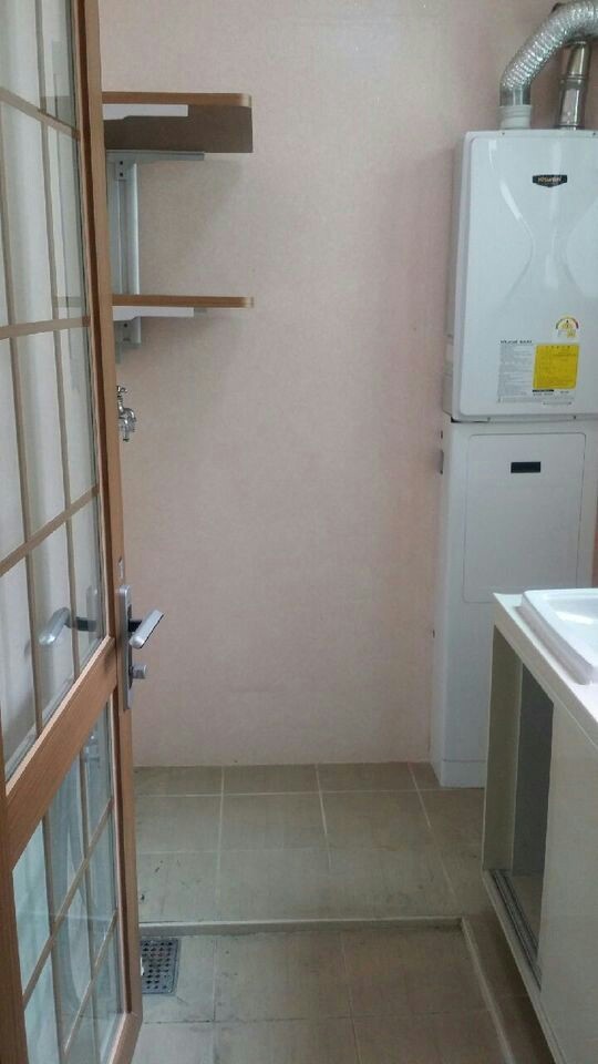 그 위에 선반은 떼서, 린나이 가스빨래건조기가 올라갈 자리를 확보해야됩니다.