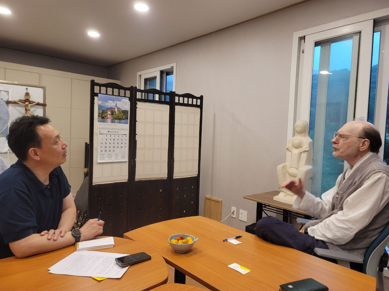 김한수 기자를 처음 만난 서명원 신부님께서 "키가 상당히 크시네요!" 감탄하자, 키가 줄어서 180 몇이라는 김 기자님의 답변이 돌아왔습니다.