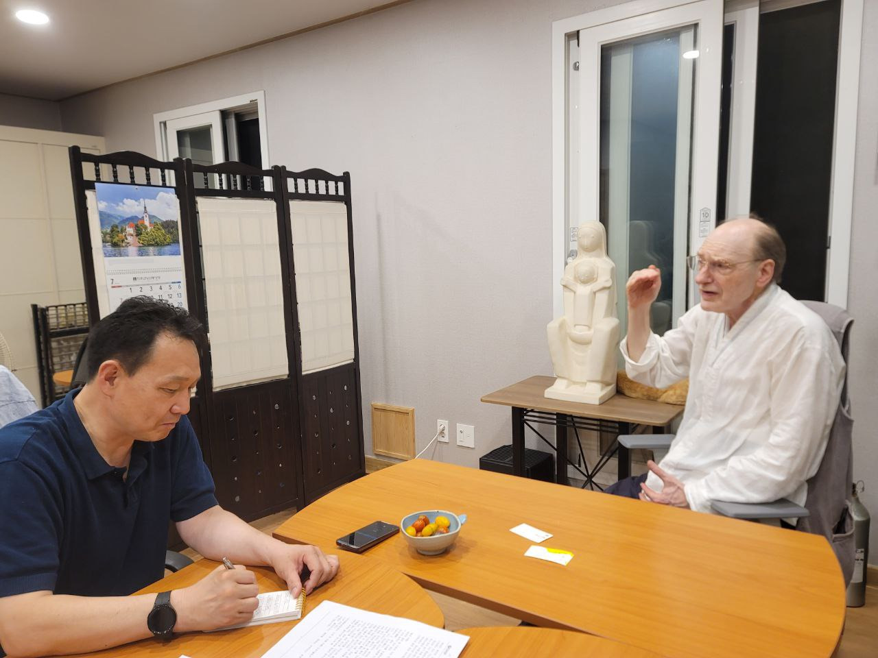 늦은 오후 비가 내리기 시작하더니, 인터뷰가 본격적으로 시작될 때 빗줄기가 더 굵어졌습니다. 해가 지기 전에 빗속에서 명상 촬영을 하고, 2시간으로 예정되었던 인터뷰가 해당 시간을 지나고, 간단한 저녁식사 시간을 거쳐 밤 9시까지 계속됐습니다.