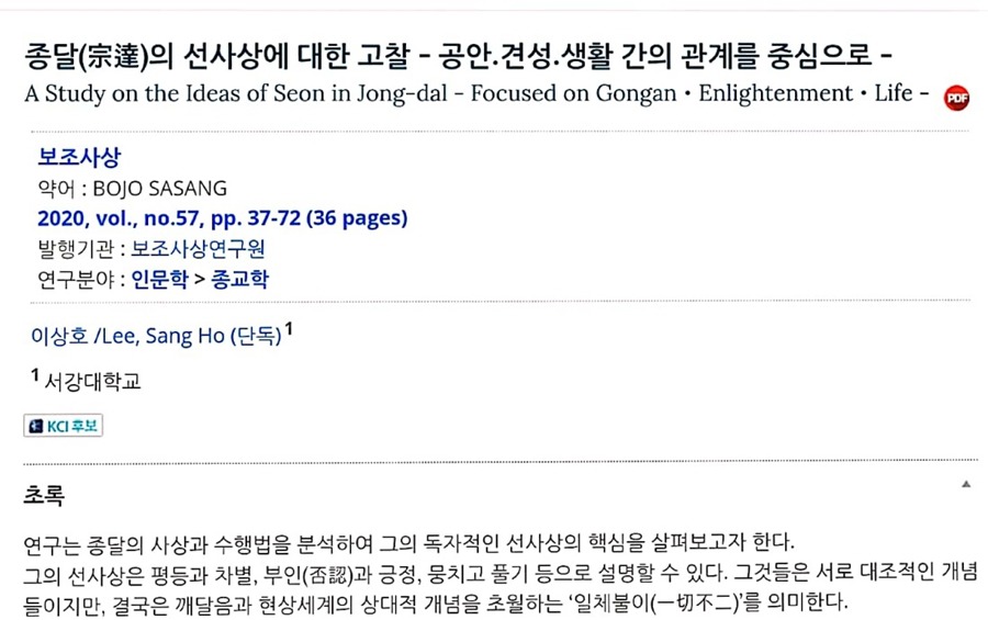 - (2018), 「의정(疑情)의 이원화와 통합을 활용한 생수선(生修禪) 정립(定立) 방안 연구: