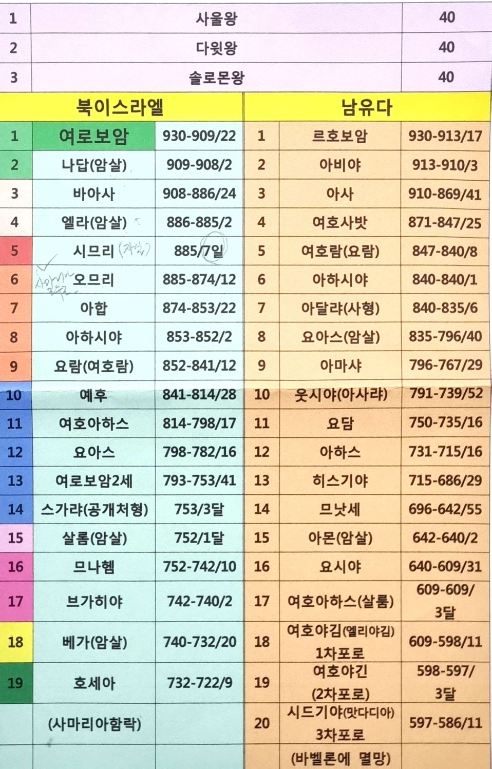 3) 솔로몬의 아들 르호보암 때 나라가 둘로 갈라집니다.
