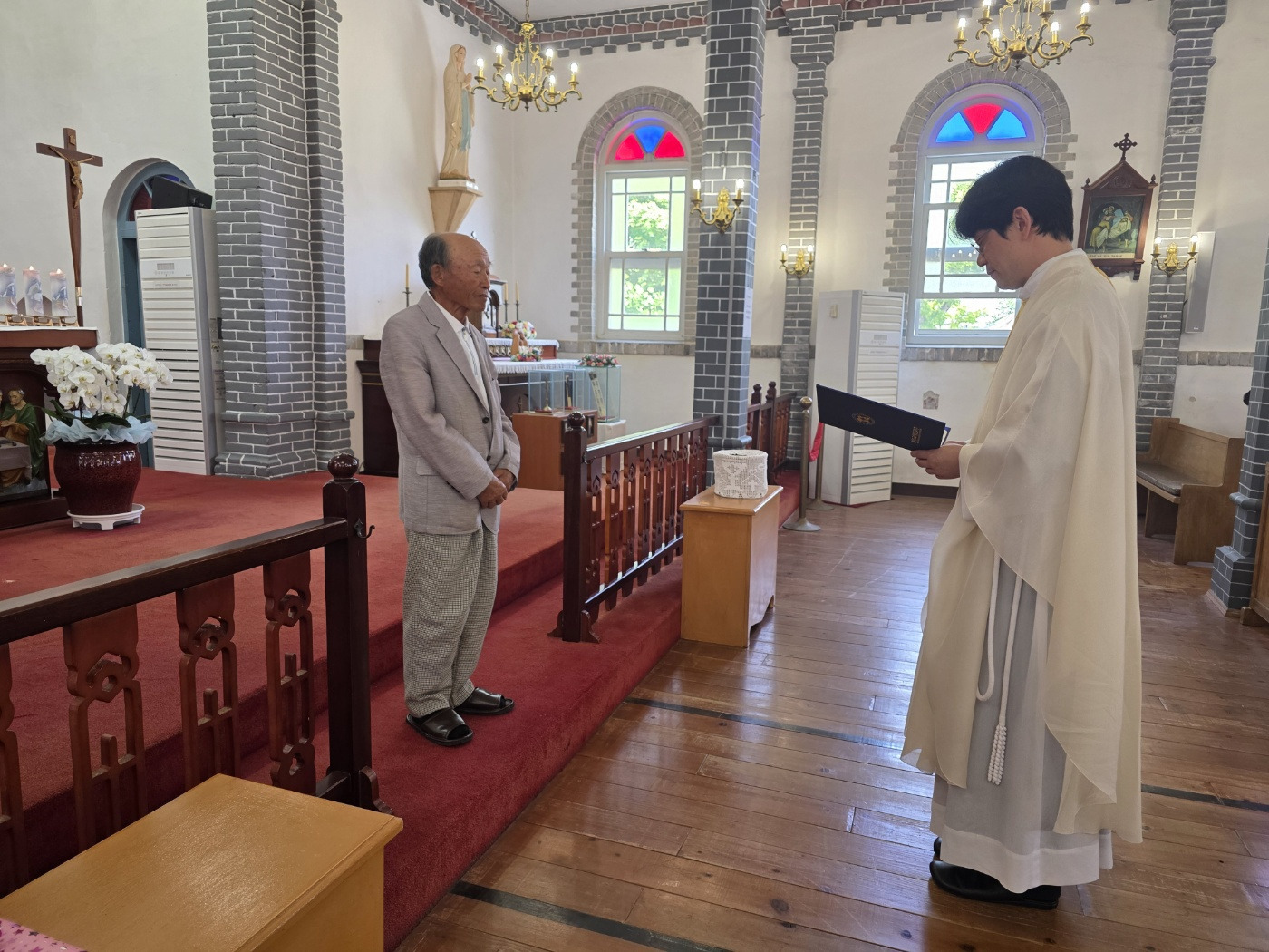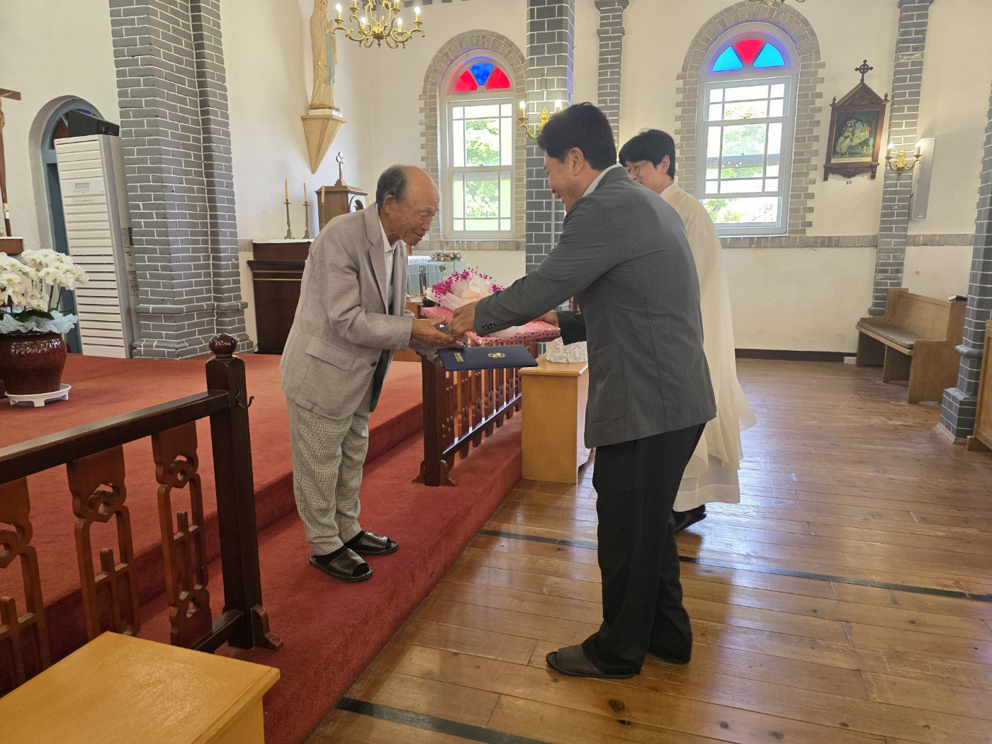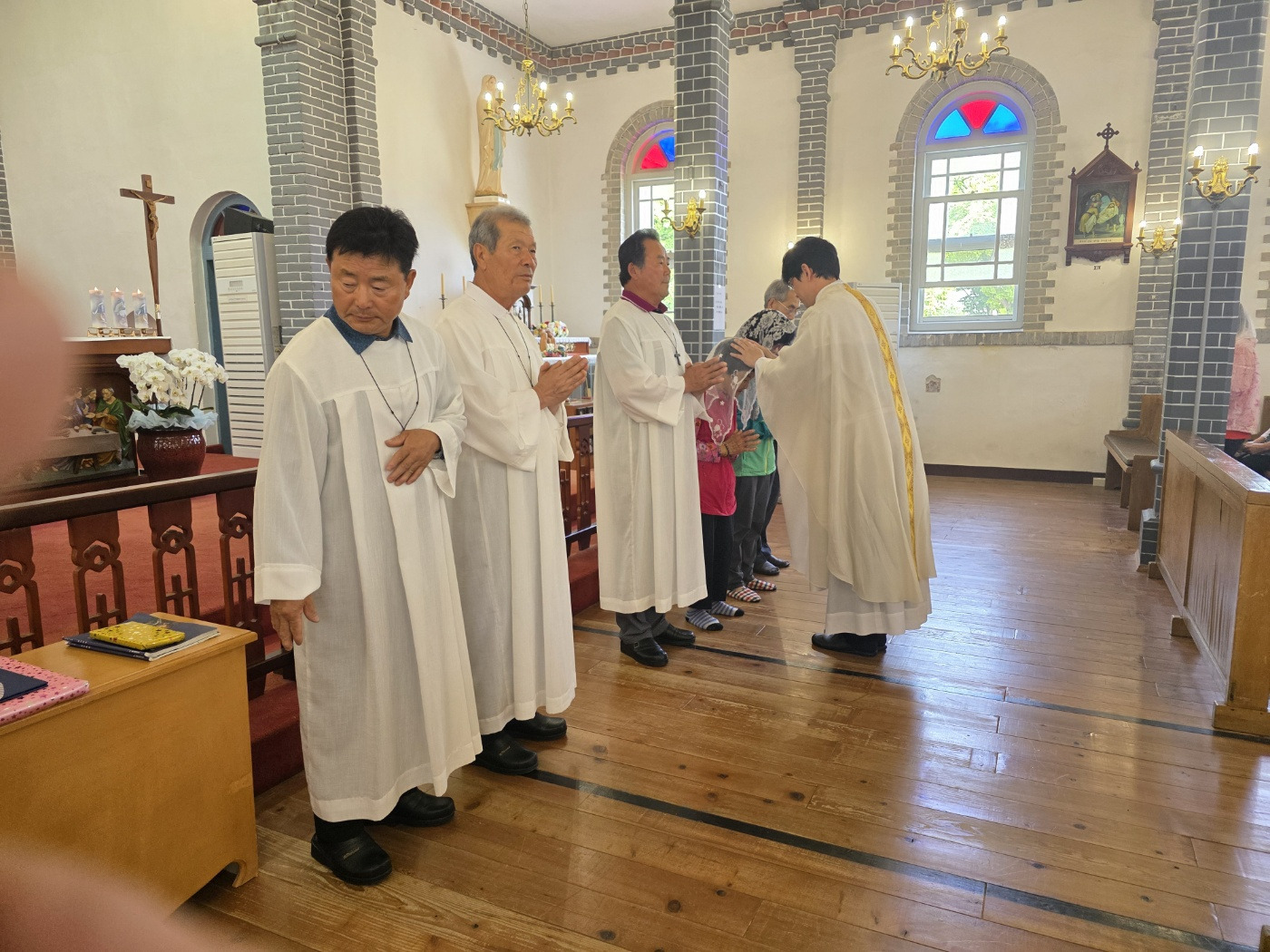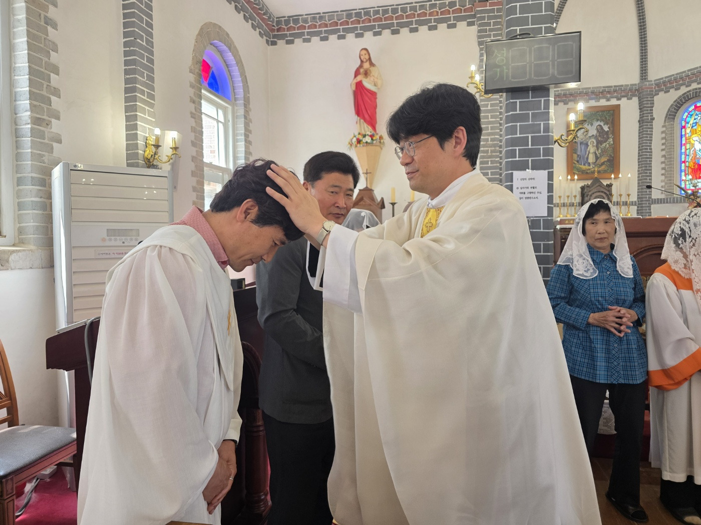 합덕성당(주임 강진영 요셉)은 2025년 6월1일 교중미사중에 사순시기 동안에 루까복음 필사를 마친 25명의 교우들에게 신부님께서 안수를 주시고 축복해 주었으며 상흑구역의 구역장을 60여년을 봉사하신 이희영 사도요한 형제님께 감사장을 드리고 신자들이 함께 축복해 주는 시간을 가졌습니다.