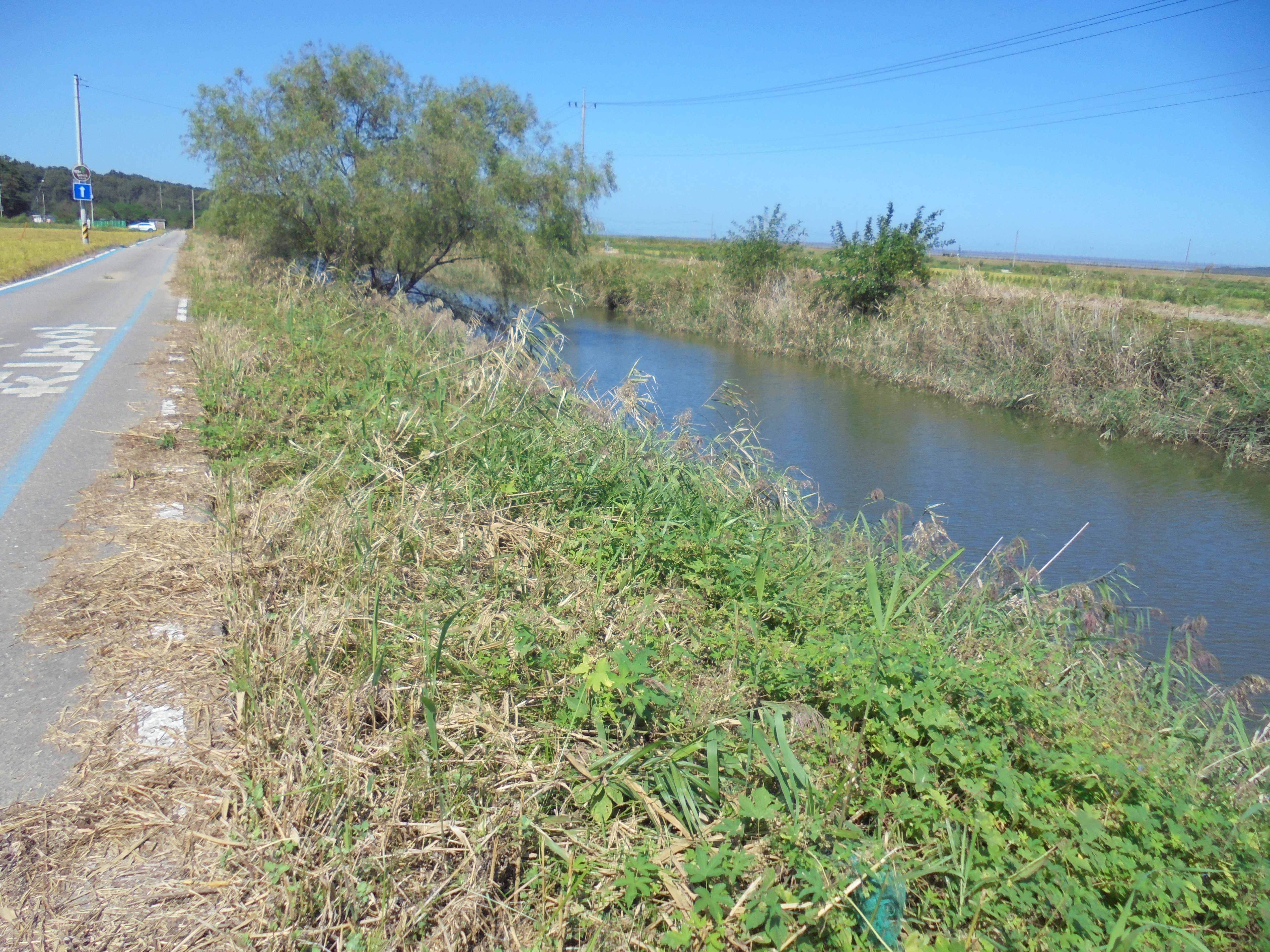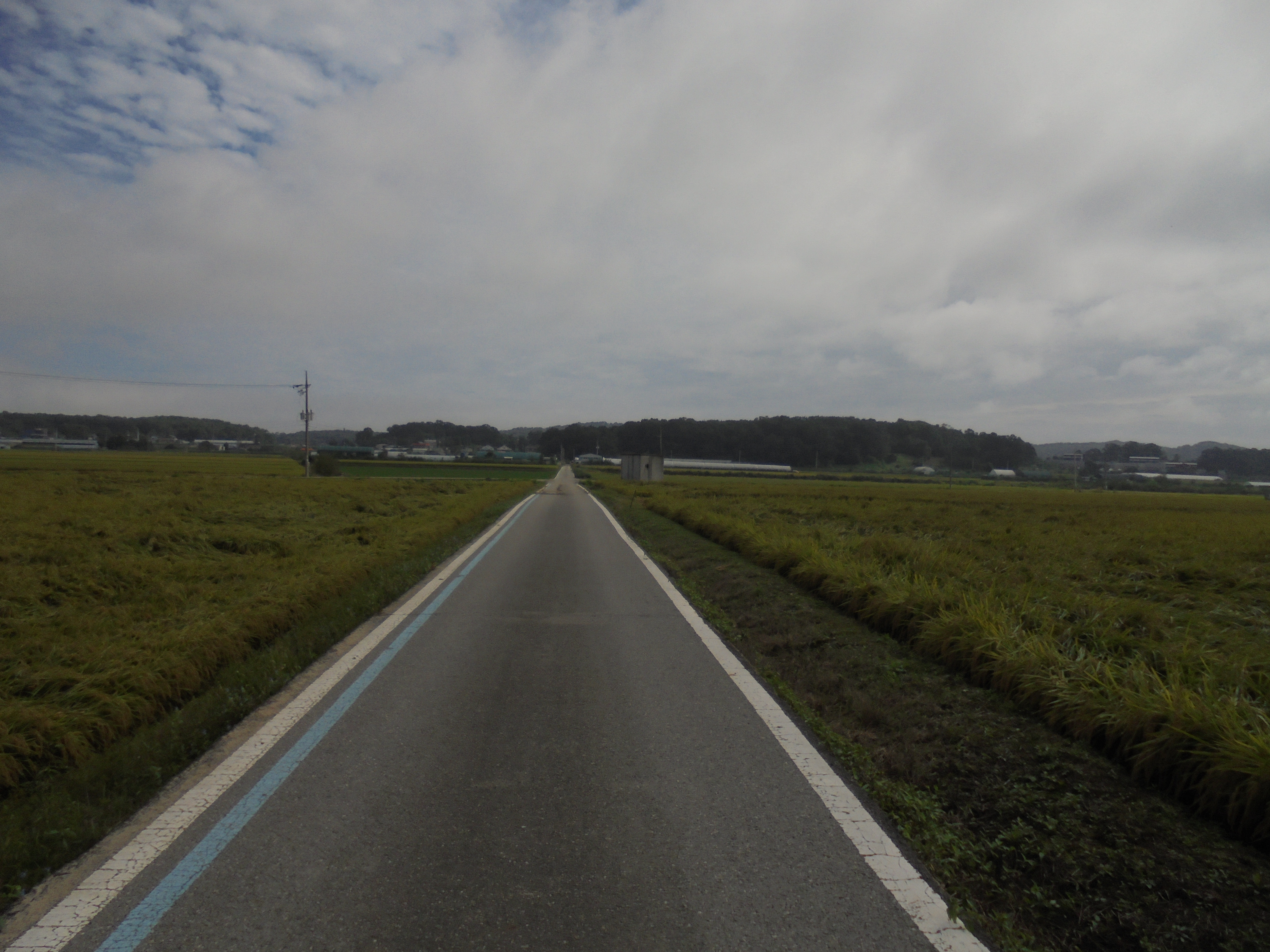 도로 주위에 나락(벼)이 노랗게 물들고 있다
