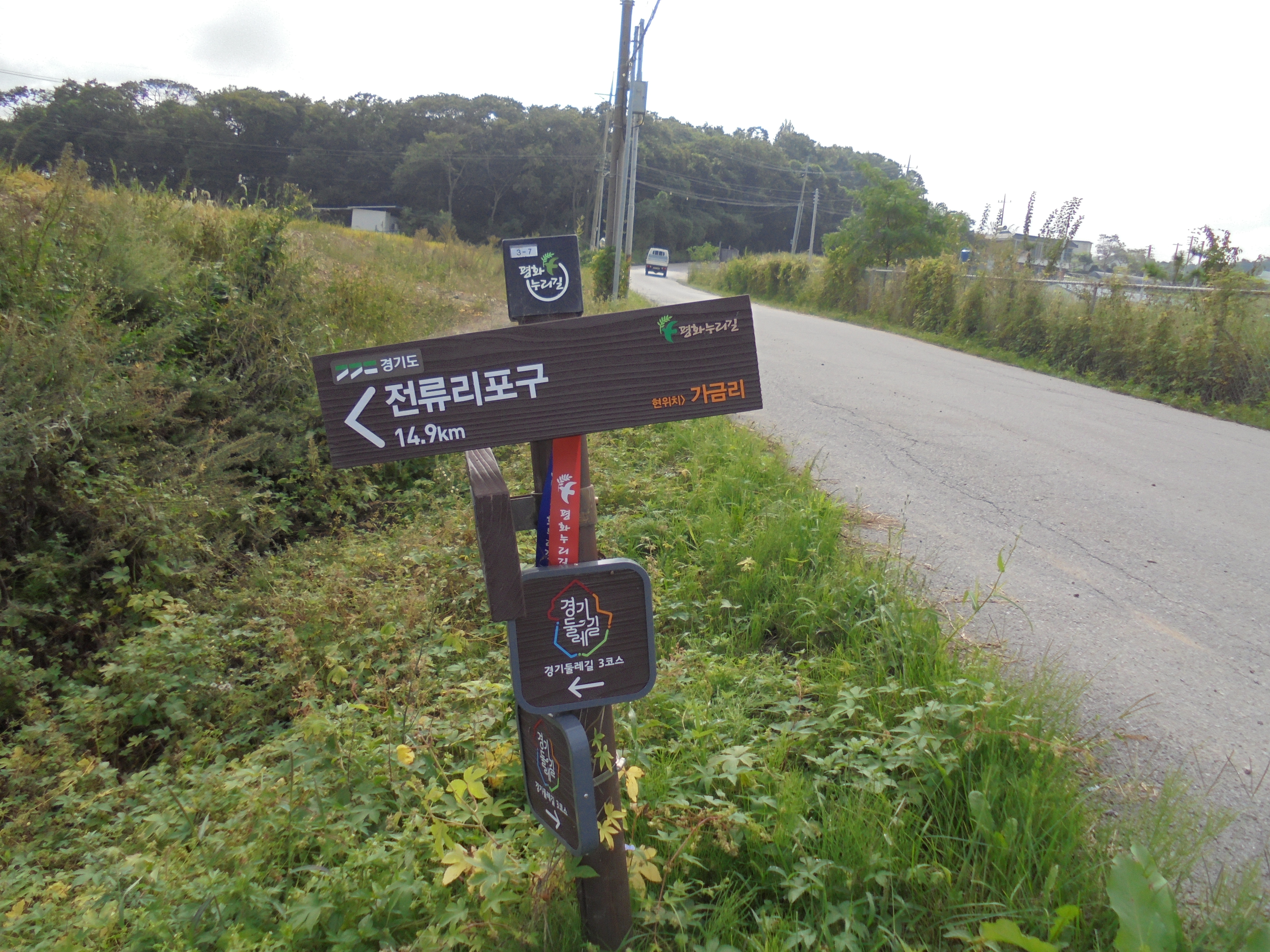 이정표에서 경기둘레길 . 전류리포구 방향으로 간다 .