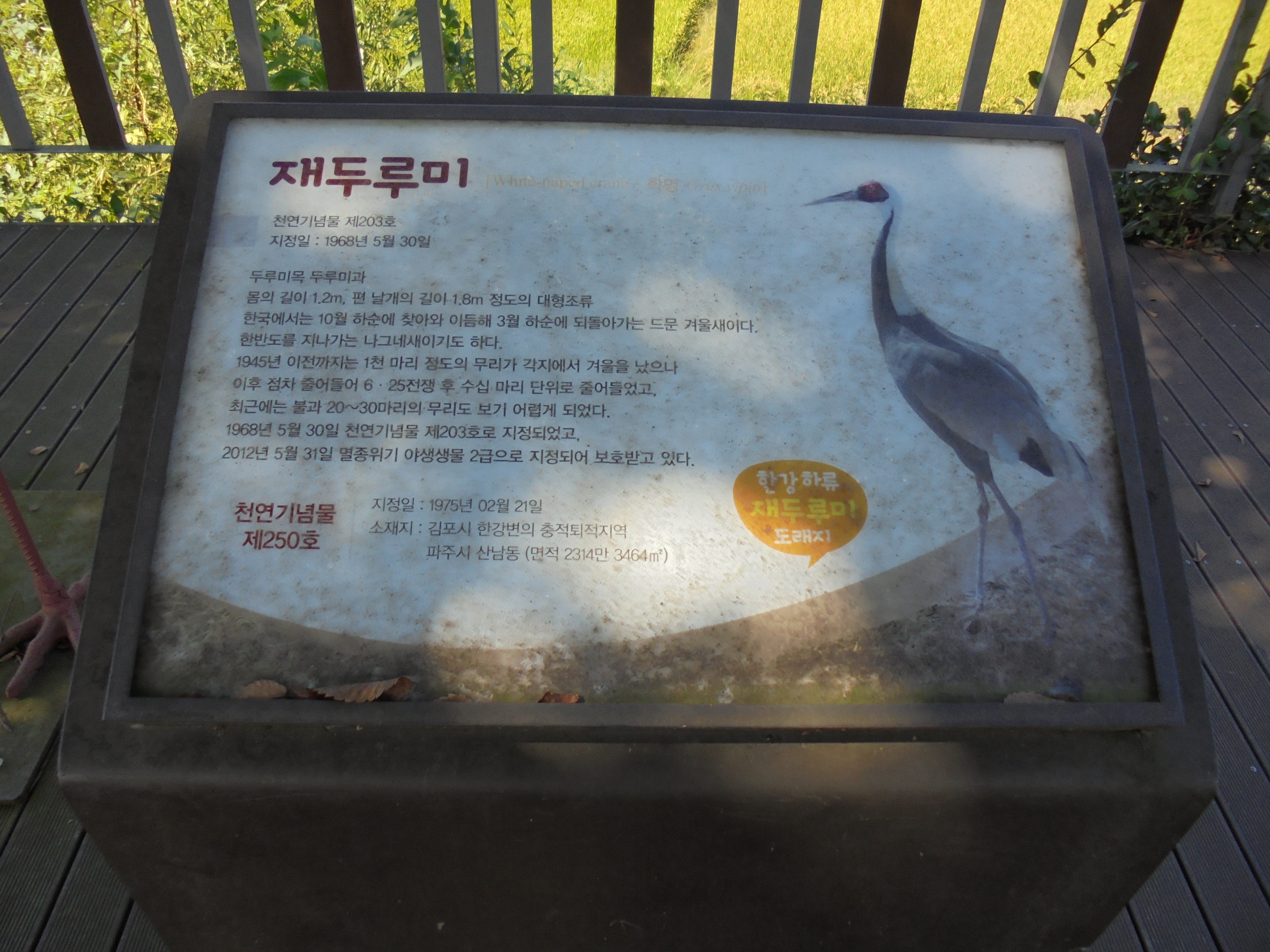 석탄이 철새조망지에는 재두리미 조형물이 있다