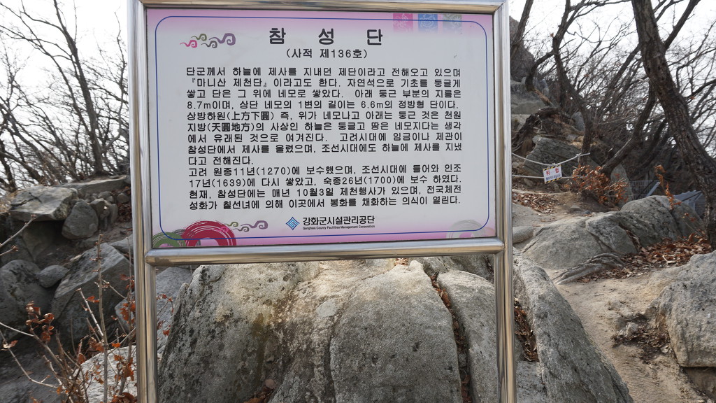 단군께서 하늘에 제사를 지내던 제단이라고 전해오고 있으며