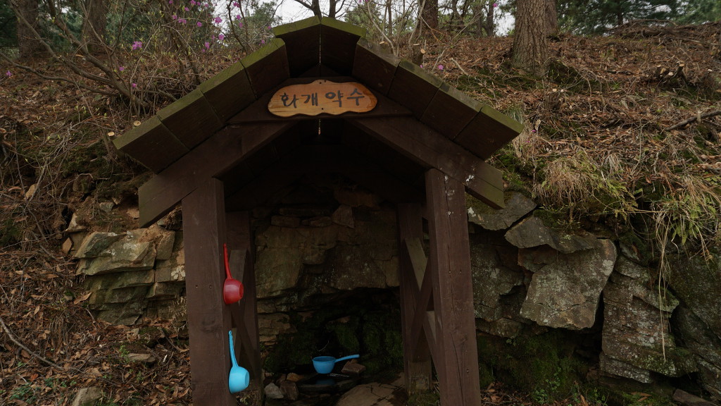 정상에서 200m쯤 내려오면 화개약수터가 나온다.