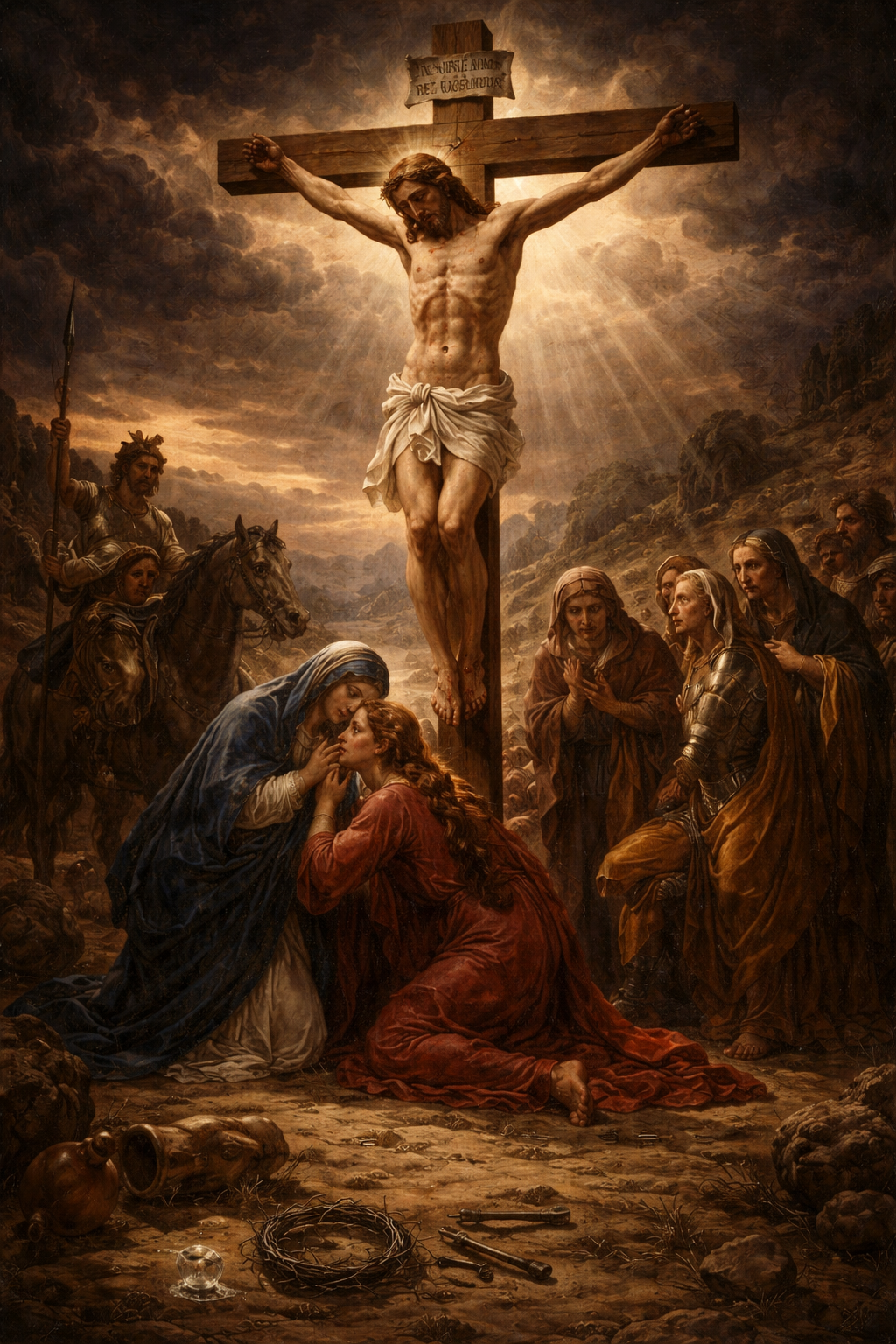 오늘 주님 수난 성금요일 전례의 절정은 ‘십자가 경배 예식’입니다. 예수님께서 보여주신 십자가는 승리의 십자가라고 말합니다. 주님과 함께 구원을 이루어가는 영광의 십자가입니다. 그렇다면 우리의 십자가를 어떻게 받아들여야 할까요? 고통, 실패의 경험들이 단순히 우리를 짓눌리는 형틀이었을까요? 주님을 통해 승리의 십자가, 영광의 십자가가 될 수 있습니다. 이를 오늘 요한 복음의 수난기를 묵상하면서 분명히 알 수 있게 됩니다.