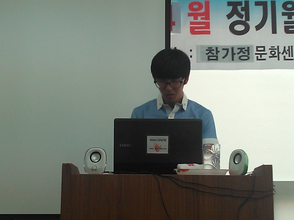 오늘 예배는 6월 15일에 있는 연합예배를 대비하여 우리 동부산 성화들에게 노정, 아들노래를 가르켜 주었습니다. 하지만 아무리 악보까지 줘도 생전 처음 듣는 노래를 부르라는 것은 좀 무리였던 것 같습니다.ㅠㅠ 제가 급해서 그만 한번 들려주고 같이 부를 걸 그랬는데, 바로 불러서 그냥 저 혼자 부른 것 같습니다.... 사실 저도 그 노래를 잘 몰라서 매우 당황스러웠습니다.ㅠㅠ 아무도 안불러서...ㅋㅋㅋ 어쨋든 다음주에는 제대로 해볼수 있었으면 좋겠습니다!! 동부산 파이팅!~