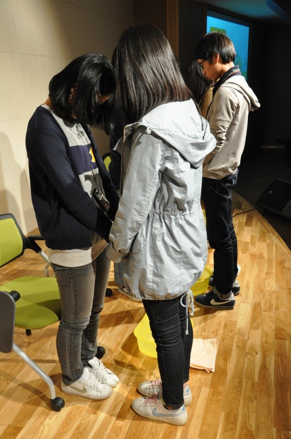 세족식후 56회 회장단들이 기수대표들에게 기도를 해주었습니다.
