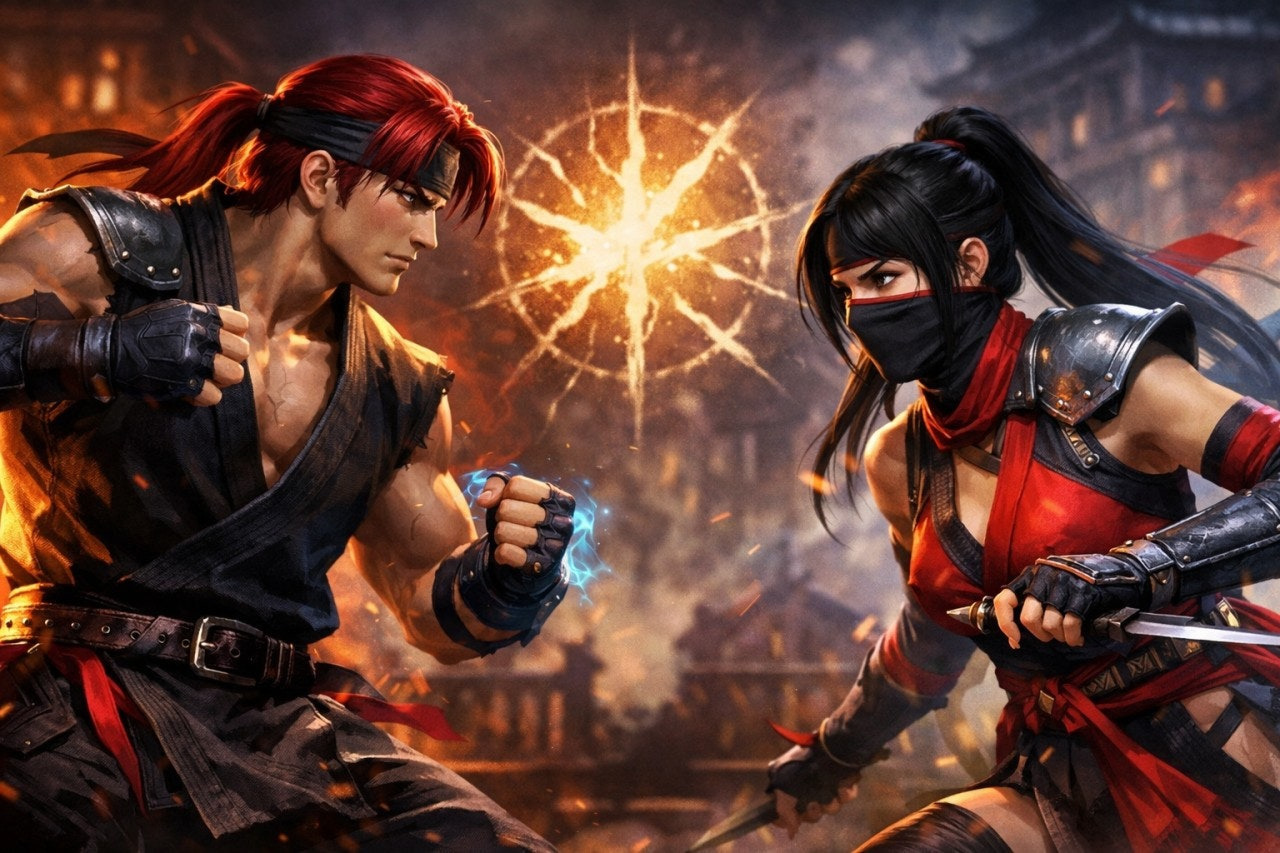 화면 속에서는 검과 단도를 든 여성 캐릭터와 현란한 발차기를 구사하는 남성 캐릭터가 격돌하고 있었다.