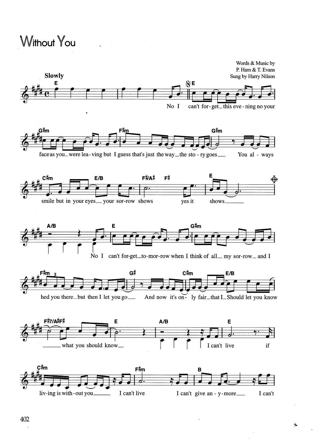 팝의 고전, Harry Nilsson의 'Without You' 입니다.