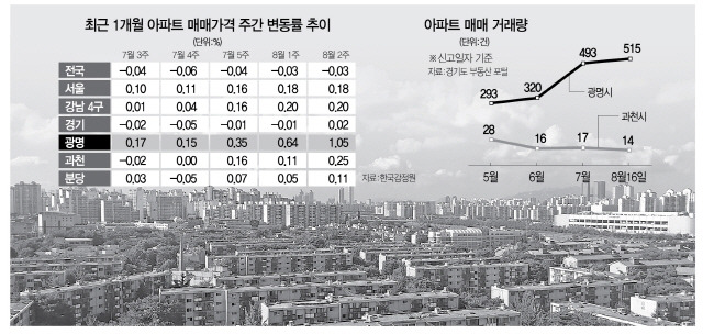 서울은 물론이고 광명,분당으로 집값상승이 이어지고있네요.