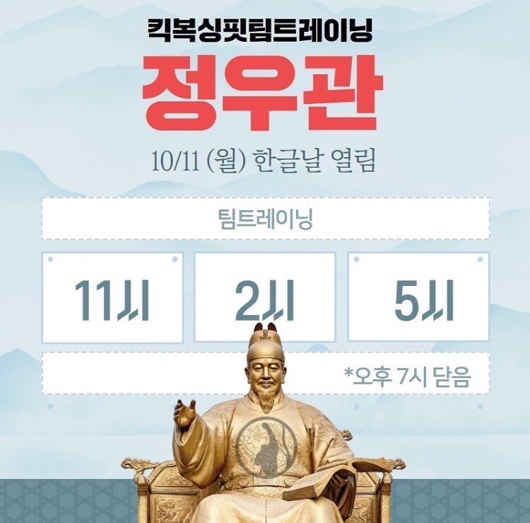 정우관은 일요일은 오후 5시까지 (11시/2시 팀트레이닝)