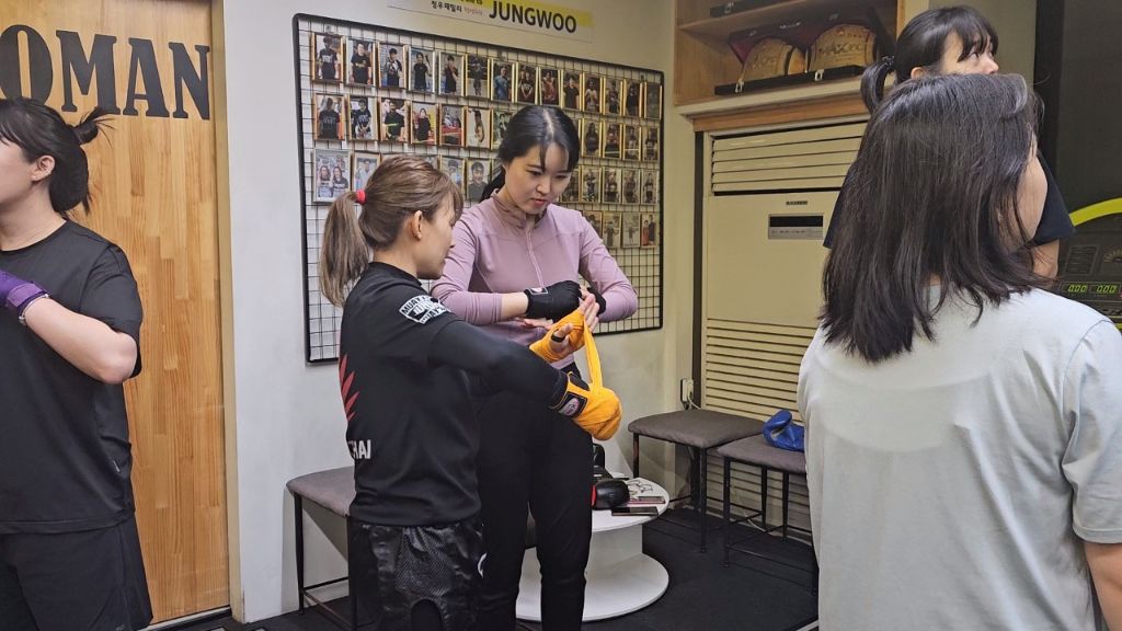 수업전 핸드랩 매는법 배우는중.