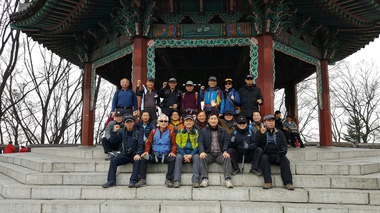 남산은 예로부터 경치가 뛰어난 곳으로 여러 선비들이 거처했고 그들이 지은 누각이 곳곳에 있었지만 지금은 모두 사라지고 문헌의 기록으로만 남아있다. 마지막으로 합류한 형채까지 무려 19명의 회원이 장충정 앞에서 인증샷을 찍고 11시부터 2017년 시산회의 첫 산행인 남산산행을 시작하였다.