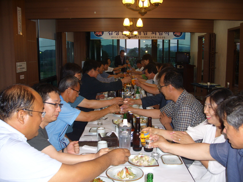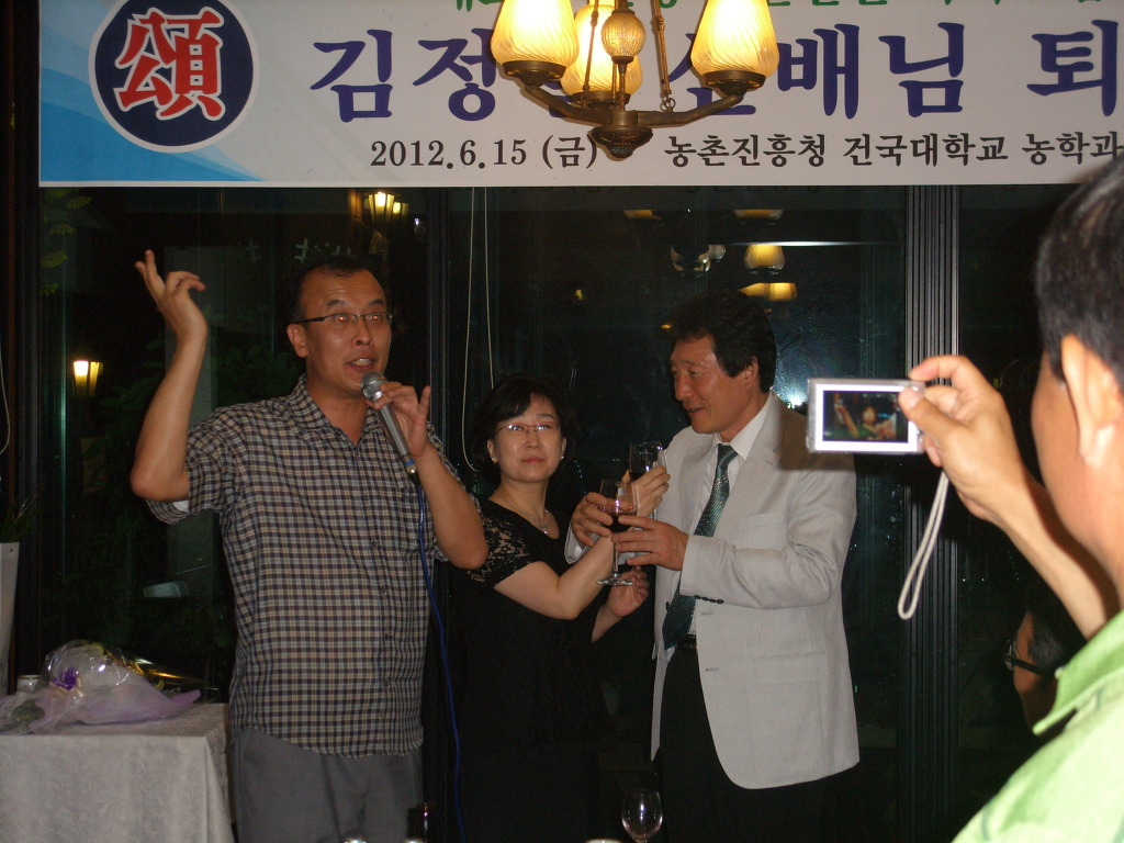 박수철(77)박사님이 김정일선배님께 축하의 소주한잔