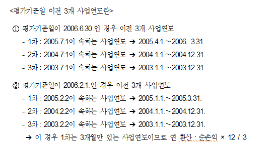 최근 3년간 순손익액 산정연도:2006, 2005, 2004년임