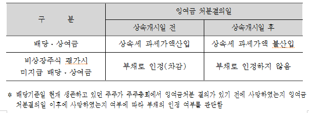 1) 순자산가액은 평가기준일 현재 시점으로 평가