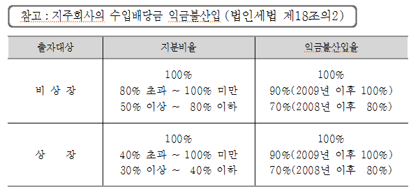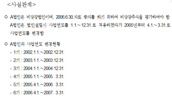 → 기업회계기준상 유가증권․유형자산의 처분손익과 자산수증이익 등의 합계액에 대한 최근 3년간 가중평균액이 법인세 차감 전 손익에 대한 최근 3년간 가중평균액의 50퍼센트를 초과하는 경우(2010.3.31.개정)