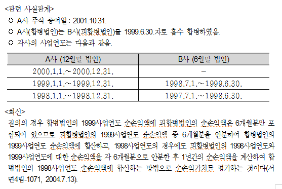 ③ 1주당 순손익액은 각 사업연도 별 순손익액을 사업연도말 발행주식총수 또는 환산 주식수로 나누어 산정하되,각 사업연도 별로 산정한 1주당 순손익액 중 (-)가 발생한 사업연도가 있는 경우 해당 사업연도의 순손익액을 “0”으로 보지 않고 (-)그대로 계산한다(서일46014-11475, 2002. 11.7).