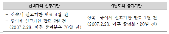 상속세 또는 증여세 납세의무가 있는 자로서 위원회에서 제시하는 평가가액 등으로 비상장 중소기업의 주식을 평가하고자 하는 납세자는 비상장법인의 보충적평가액 및 평가관련 서류 등을 첨부하여 법정기한 내에 위원회에 신청하여야 하고, 위원회에서는 신고기한 만료 1월전까지 평가가액 등에 대한 결과를 통지하여야 한다.