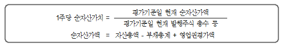 1주당 순자산가치는 평가기준일 현재 비상장법인의 자산총액에서 부채총액을 차감한 순자산가액을
