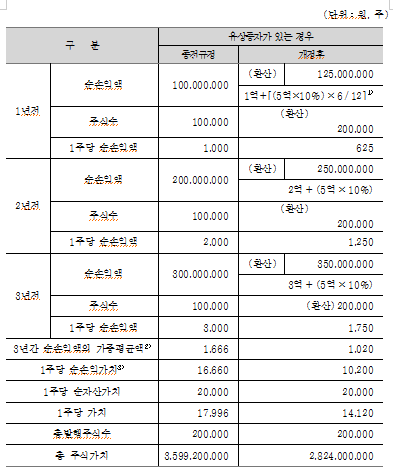다. 1주당 추정이익에 의한 순손익가치의 계산