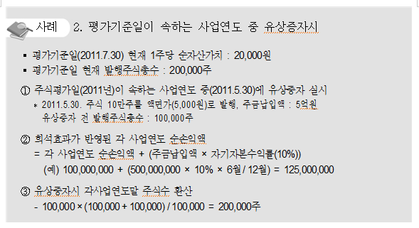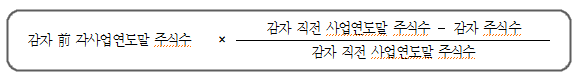 - 증자전 각사업연도말 주식수×[(증자직전 사업연도말 주식수 + 증자주식수)/증자직전 사업연도말 주식수]