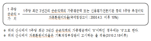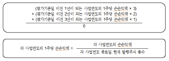 2) [(1년전 1주당손익액×3)+(2년전 1주당손익액×2)+(3년전 1주당손익액×1)] ÷ 6