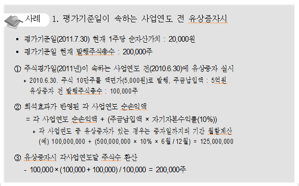 1) 사업연도 개시일부터 유상증자 한날까지의 기간에 대해 월할로 계산