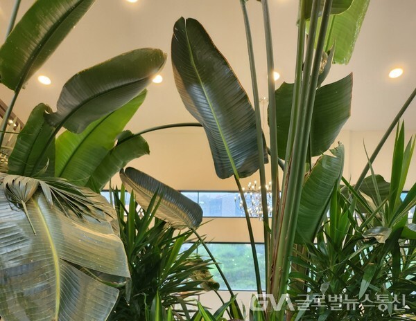 (사진촬영 : 글로벌뉴스통신 송영기 기자) 열대림 처럼 실내에 관상수가 제법 뿌리를 내려 시원하다