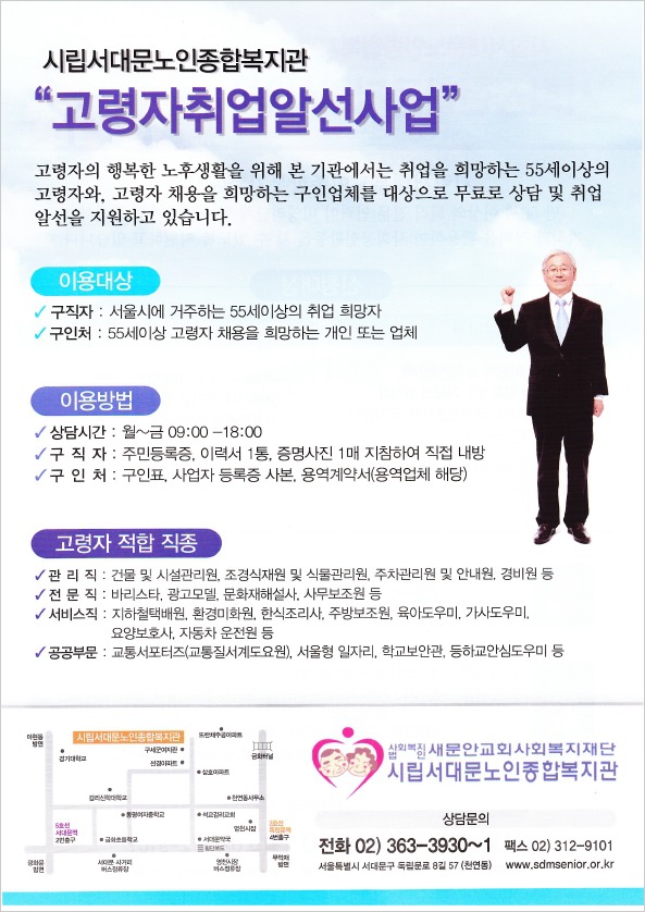 <서울시 55세 이상 무료 취업알선> 작성자천양호|작성시간18.03.28|조회수86 목록 댓글 1 글자크기 작게가 글자크기 크게가 다음검색 현재 게시글 추가 기능 열기 북마크 공유하기 신고 센터로 신고 댓글 댓글 1 댓글쓰기 답글쓰기 댓글 리스트 작성자한정원 관리자 | 작성시간 18.03.28 공지로 띄워드리겠습니다.^^ 댓글 전체보기
