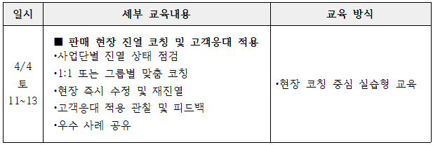 판매 현장 진열 코칭 및 고객 응대 적용