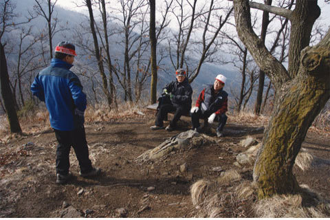 ▲ 고비고개에서 혈구산 정상으로 향하는 길 중간에 있는 쉼터. 가장 짧은 코스로 정상까지 1시간쯤 걸린다.