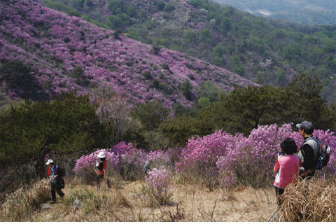정말 하루 온종일 질리도록 진달래만 보면서 걸어본 적이 있는가? 아마도 소월이 읊었던 ‘영변에 약산 진달래’도 그렇지는 못하리라. 그러나 고려산은 혈구산·퇴모산과 더불어 진달래 꽃길에서 꽃길로, 산길에서 산길로, 봉우리에서 봉우리로 이어지다가 어디만치 가서 잦아드는 듯싶으면 다시금 꽃에서 꽃으로 이어지기에 가벼운 마음으로 봄 산을 찾은 이들의 가슴에 기어코 뜨거운 불을 질러놓고야 만다.