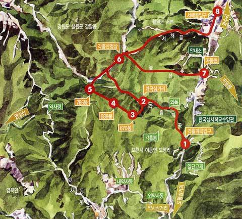 각흘계곡경유코스B (5.2㎞ 약 2시간)