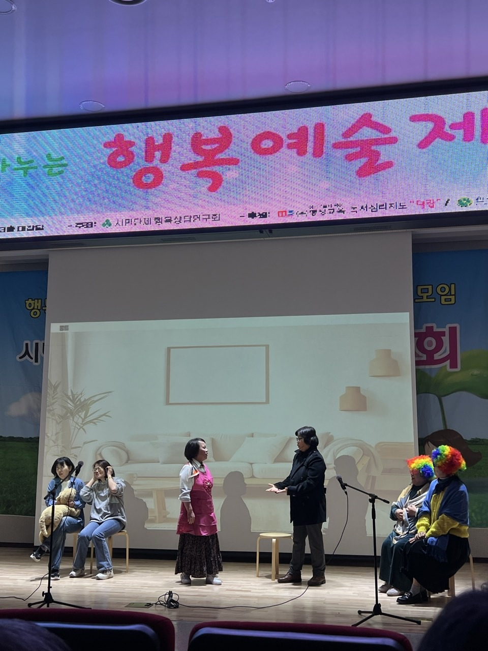 행복상담 연구회와 한국발달독서치료협회 소개 후, 본격적인 공연을 앞두고 편안하고 즐거운 분위기를 위해 레크레이션이 있었는데요
